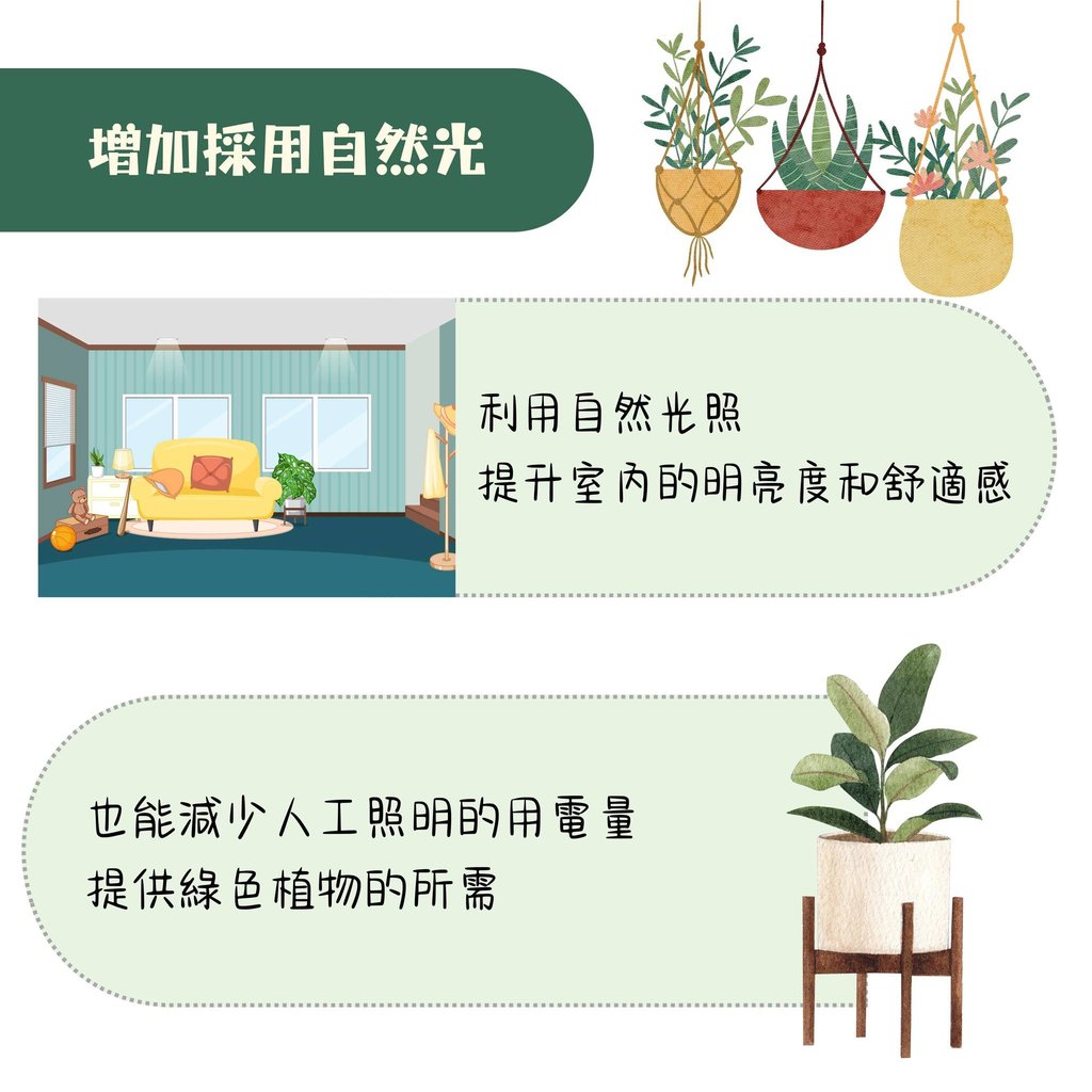 節能與植物所需:自然採光能減少人工照明的用電量,同時提供綠色植物生長所需的必備光源。